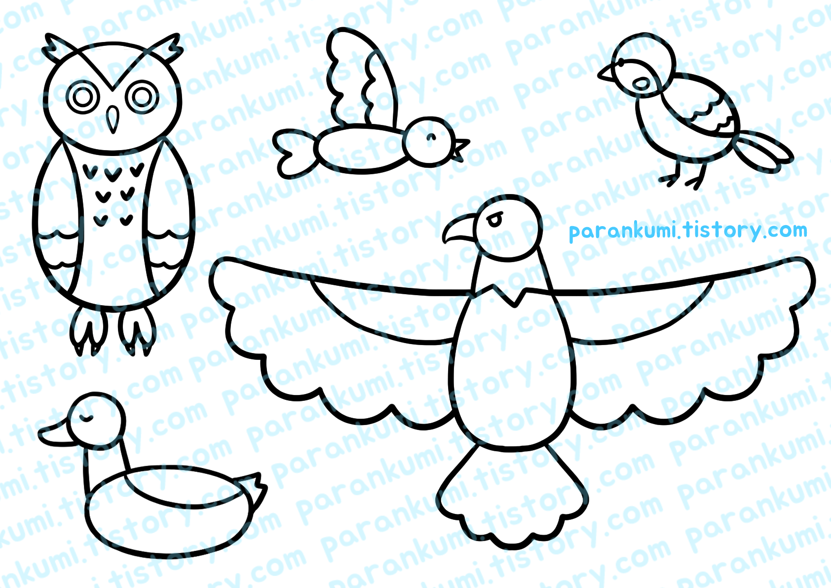새 그리기, 부엉이 그리기, 참새 그리기, 오리 그리기, 독수리 그리기